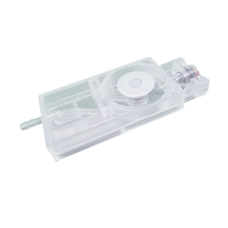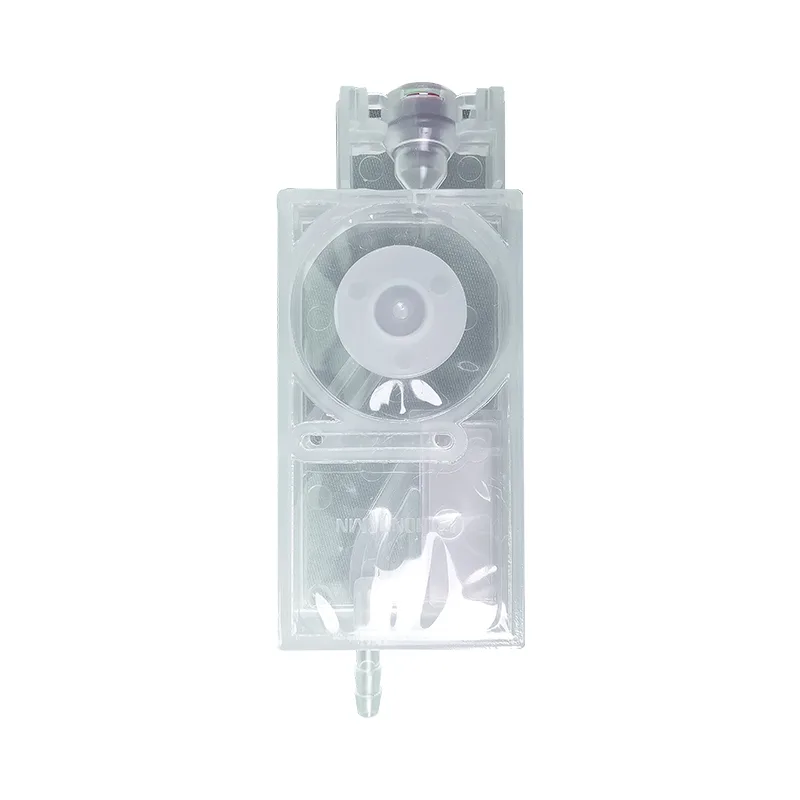 Damper vertical transparente diseñado para filtrar impurezas y burbujas de aire, asegura un flujo estable de tinta y prolonga la vida útil del cabezal. Ideal para impresoras DTF.