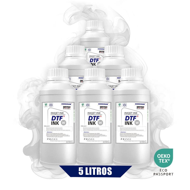Tinta para DTF blanca x 5 litros HONGSAM es la elección ideal para impresores que buscan un kit de máxima cobertura y estabilidad constante en sus impresiones. Su formulación avanzada ofrece un blanco intenso y uniforme que realza los colores y asegura resultados profesionales en cada impresión.