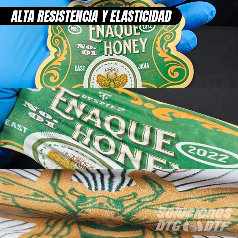 • Alta resistencia y flexibilidad: La película impresa supera el 30 % de elongación sin agrietarse, ofreciendo acabados flexibles y resistentes, incluso tras estiramientos y lavados.