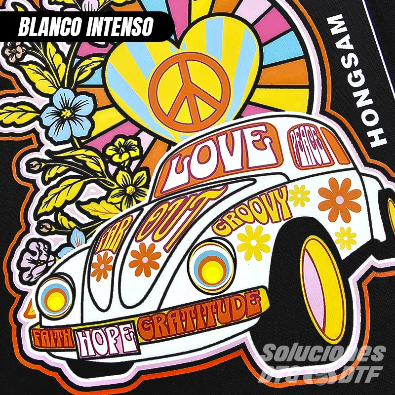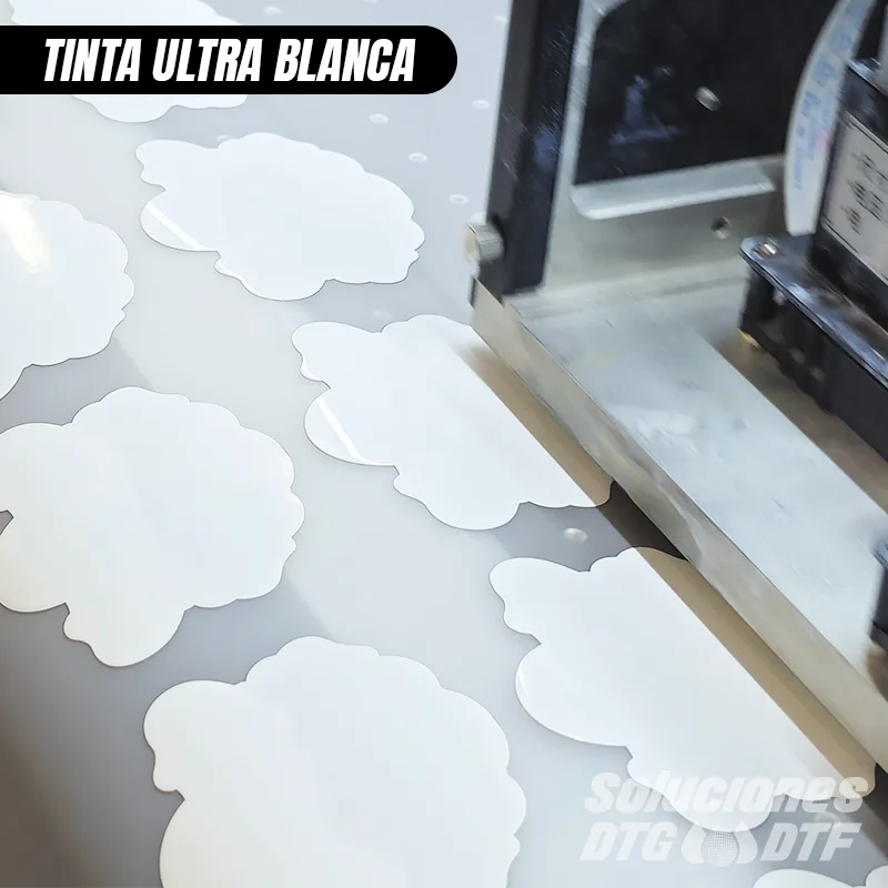 • Blanco intenso y excelente poder cubriente: Genera una base impecable sobre film PET, ideal para telas oscuras, logrando solores vivos.