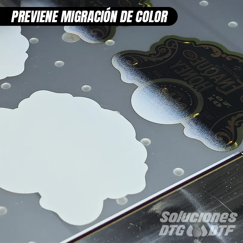 • Compatibilidad perfecta con tintas de color: Se integra perfectamente con tintas CMYK y colores light, evitando penetración o mezcla indeseada.